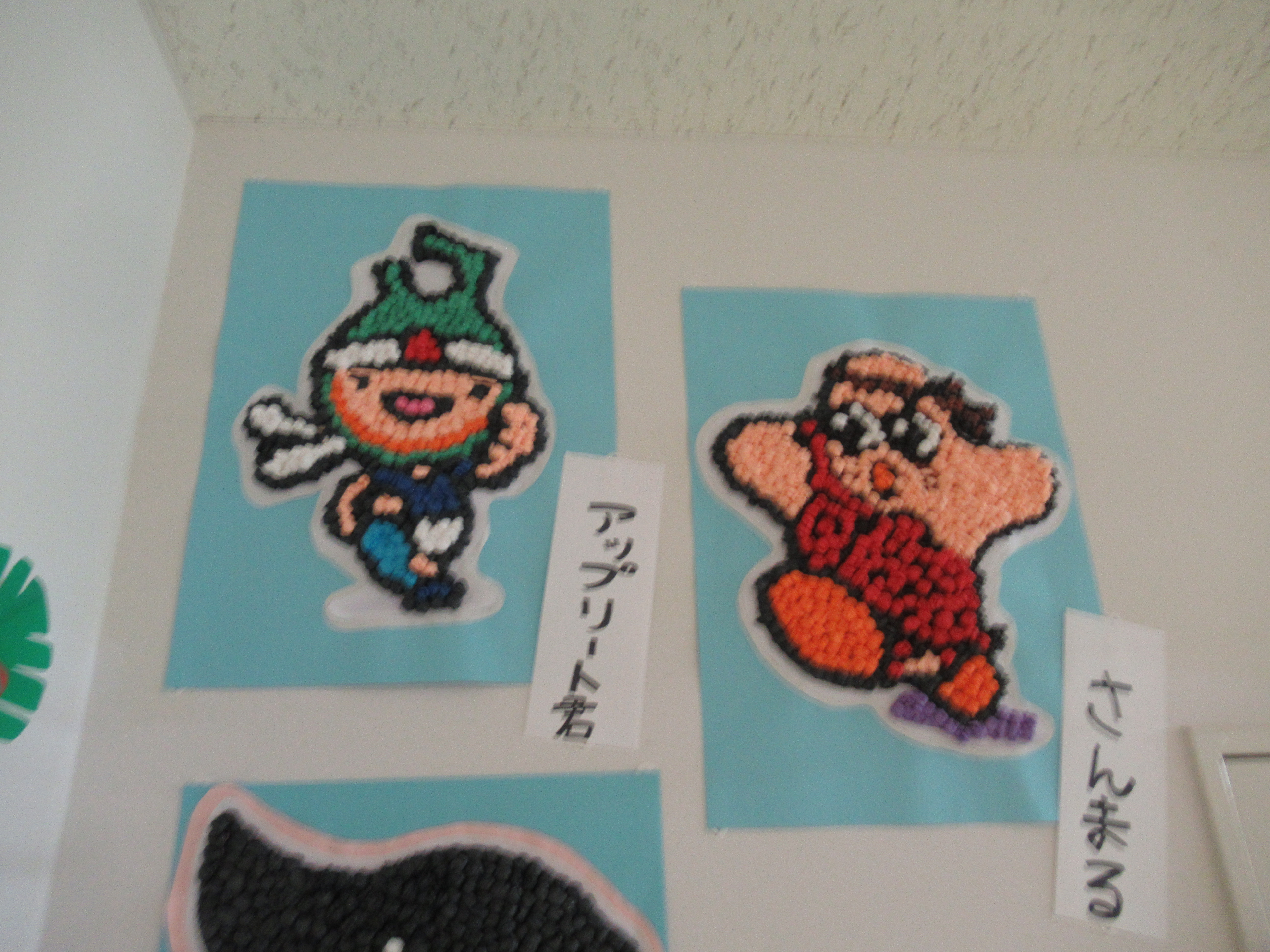 こちらは青森のご当地キャラの立体作品。皆さんでたくさんの紙を丸める作業を分担。